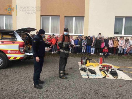 Школярі разом із хустськими рятувальниками опановували ази безпеки та вчилися вправлятися зі спецобладнанням