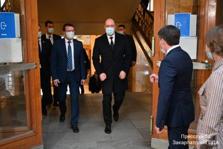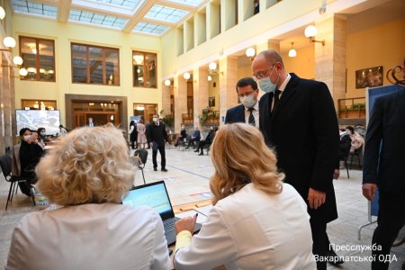 Голова облдержадміністрації Анатолій Полосков разом із Прем’єр-міністром України Денисом Шмигалем, що перебуває на Закарпатті з робочою поїздкою, оглянули один із Центрів вакцинації області, що діє в атріумі ОДА.