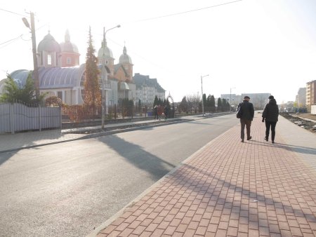 Днями уклали асфальтобетонне покриття проїжджої частини, ФЕМ-плиткою викладають тротуари, велодоріжки з’єднують цю вулицю із прокладеними на сусідній вулиці Тиводара Легоцького.