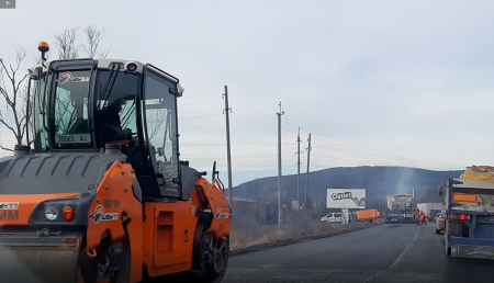 ШБУ- 77 продовжує капітальний ремонт відрізку дороги М-23 Вилок – Берегово, наразі працівники компанії роблять зїзди та другий шар асфальту, через це проїзд по дорозі ускладнений.