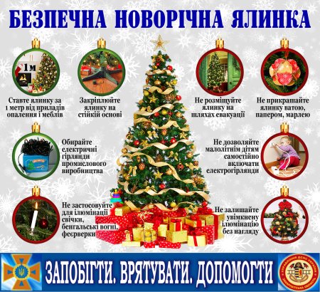Менш ніж за тиждень уся держава порине у вир новорічно-різдвяних свят. Тож краяни вже зараз обирають красуні-ялинки, що мають принести у домівку новорічний настрій та щасливі й радісні миттєвості. Але, якщо не дотримуватись правил пожежної безпеки під час встановлення та прикрашання новорічної красуні, Новий рік може запам'ятатися лихом, спричиненим безконтрольним вогнем. Рятувальники Закарпаття закликають всіх дотримуватися елементарних правил пожежної безпеки та нагадує їх.