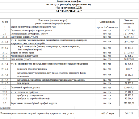 Тарифний план – «Твій газ річний» закладена фіксована ціна протягом року.