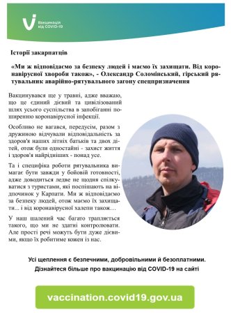 Закарпатський рятувальник Олександр Соломінський поділився своєю історією вакцинації.