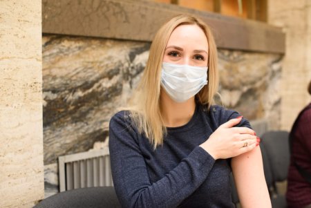 Днями 25-річна поліціянтка Анна Зіміна зробила бустерне щеплення у Центрі вакцинації в атріумі Закарпатської ОДА.