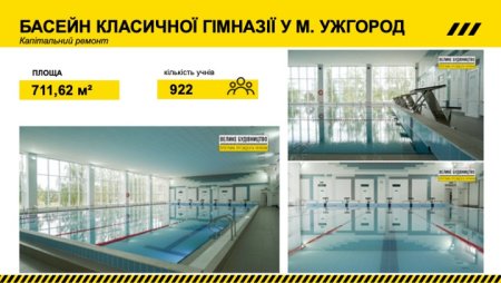 В обласному центрі у Класичній гімназії провели капітальний ремонт басейну, під час якого замінили чашу, технологічне обладнання, влаштували нове покриття тощо.