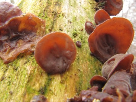 🍄 Аурикулярія вухоподібна, також іудине вухо (Auricularia auricula-judae) – оселяється на мертвих або ослаблених гілках, стовбурах, пнях бузини. Гриб цінується на Далекому Сході і вирощуються штучно приблизно з 600 року н. е. Аурикулярія є обов'язковим інгредієнтом китайського супу "Чорний гриб". Страви з цього гриба у Китаї вважаються лікувальними. Можна вживати і в салатах та виготовляти смачні конфети.