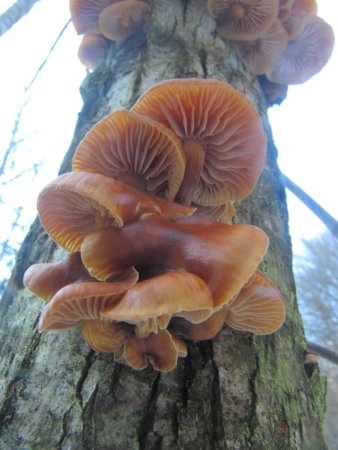 🍄 Опеньок зимовий (Flammulina velutipes) віддає перевагу м'якій деревині - вербі і тополі, але зростає і на ясені, в’язі, вільсі та грабі. Це чудовий їстівний гриб. Широко культивується в Японії, Індії, Китаї, Кореї, В’єтнамі та в Угорщині. В магазинах його можна купити під назвами: енокітаке, енокі, футу. 1993 році гриб був відправлений у космос на космічному човнику і таким чином став першим грибом, розвиток якого вивчали у космосі.