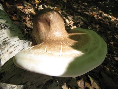 🍄 Губка березова (Fomitopsis betulina) росте на відмерлих стовбурах та живих березах, спричиняючи гниль серцевини. Цей гриб збирається людиною з дуже давніх часів. Дві кульки з цього гриба, нанизані на шкіряній стрічки, знайшли серед речей Етці – людини, що жила 5300 років тому в Тіролі. Оксамитова зрізана поверхня плодового тіла у давнину традиційно використовувалася як ремінь для обробки країв на бритвах. У Німеччині та Скандинавських країнах з нього готують чай, який має виражену протизапальну дію та пригнічує ріст пухлинних клітин.
