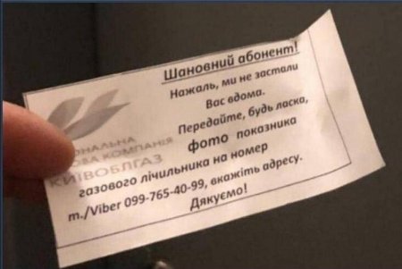 "Офіційно повідомляємо, що із 26 лютого контролери АТ "Закарпатгаз" не здійснюють візити до споживачів та не залишають жодних повідомлень у дверях. Тому, будь ласка, побачивши подібне повідомлення на дверях квартир, зніміть його", – зазначили у пресслужбі "Закарпатгазу".