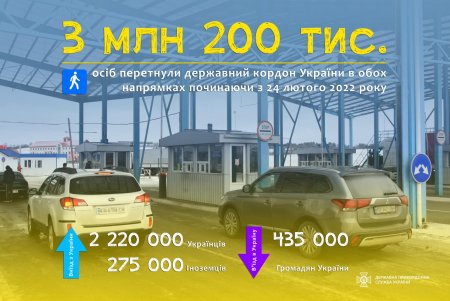 З початку повномаштабного вторгнення росії в Україну державний кордон України перетнуло 3,2 млн осіб