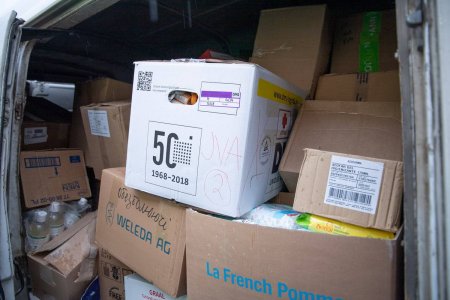 У місто Зміїв повезли медичні засоби – антибіотики, жарознижувальні, протизапальні, знеболювальні, серцево-судинні, заспокійливі ліки, препарати для розрідження крові, ліки для шлунка, вітаміни, перев’язувальні матеріали тощо.