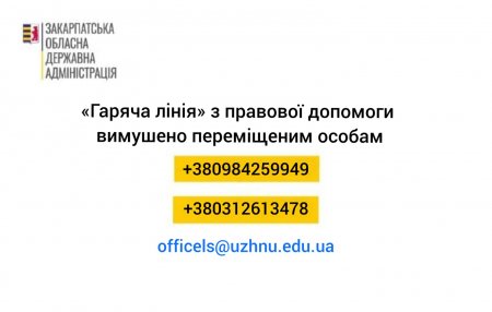 Для вимушено переміщених осіб, котрі потребують правової підтримки, на Закарпатті створили «гарячу лінію». Про це йшлося на зустрічі заступника голови обласної військової адміністрації Петра Добромільського з деканом юридичного факультету УжНУ Ярославом Лазуром.