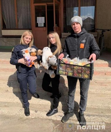 Поліцейські Тячівщини завітали до діток-переселенців зі смаколиками