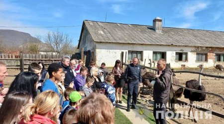 Малята віком від 3 років та вже майже дорослі юнаки та дівчата познайомилися з власником ферми, який завів перших птахів майже 20 років тому. Разом із поліцейськими, діти годували страусів та роздивлялися павичів, а потім мали змогу побачити кількох оленят та віслюків, які також проживають на території ферми.