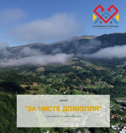 Відповідно до рішення виконавчого комітету Ясінянської селищної ради з метою забезпечення чистоти і порядку в населених пунктах громади, ліквідації несанкціонованих сміттєзвалищ, прибирання та приведення у належний санітарний стан прибудинкових територій, очищення від сміття парків, берегів річок, впорядкування територій меморіальних комплексів, пам’ятних знаків, кладовищ, у Ясінянській громаді з 18 квітня по 31 травня пройде довгострокова акція «За чисте довкілля».