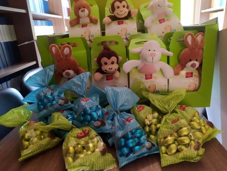 Пакунки, у яких паска, мука, макарони, рис, олія, яйця, паштет, ковбаса, шинка, печиво, вафлі, шоколадні писанки, іграшки для дітей, передають працівники Служби у справах дітей Ужгородської міської ради.
