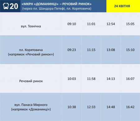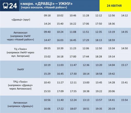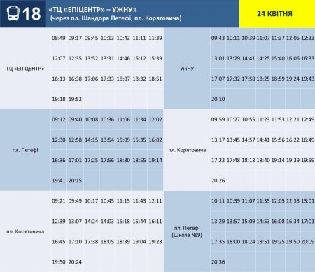 КП "Ужгородський муніципальний транспорт" інформує про графік руху міських комунальних автобусів №№18, 20, 24 і 156 на Великдень, 24 квітня