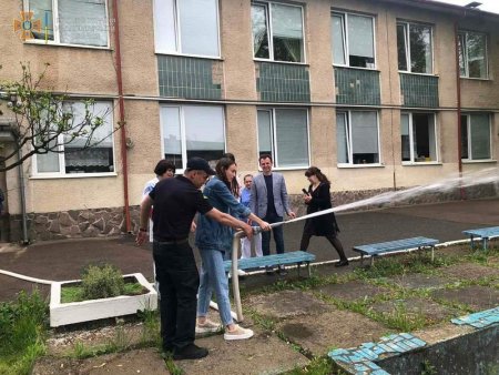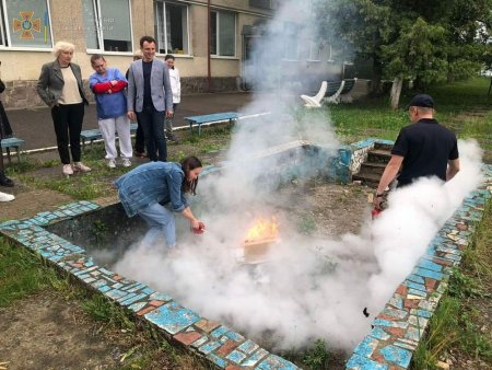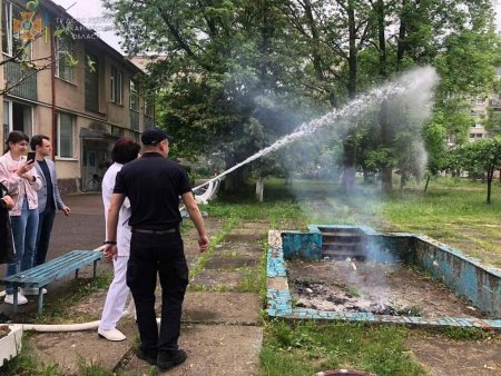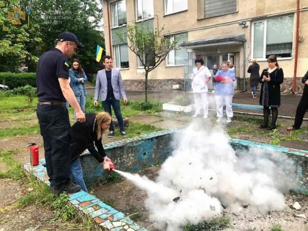 Після розмови надзвичайники вручили персоналу листівки застережливого характеру та на завершення провели практичне заняття з використанням вогнегасників і внутрішніх пожежних кранів.