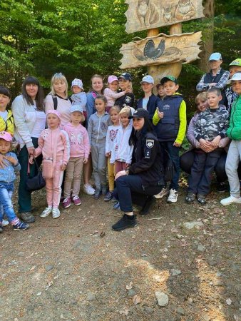 Поліцейські Міжгірщини побували з дітками-переселенцями на мальовничому водоспаді Шипіт