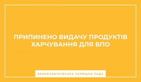 В зв'язку з обмеженим постачанням до Великобичківського волонтерського штабу продуктів харчування та засобів гігієни, штаб припиняє їх видачу з 1 червня 2022 року. Обмеження запроваджується з метою першочергового забезпечення штабом всім необхідним для військових ЗСУ та комунальних закладів в яких проживають ВПО.