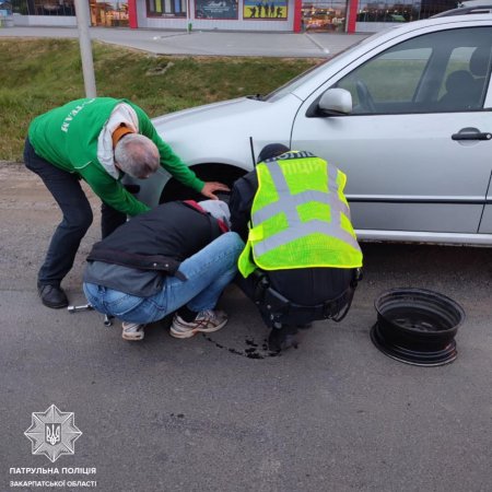 Мукачівські патрульні допомогли водію, що не мав інструментів, замінити пошкоджене колесо