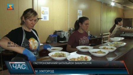 Перше, друге та десерт. Близько тисячі вимушених переселенців в Ужгороді щодня безплатно харчуються у Гастрономічному батальйоні Закарпаття. Волонтери організувалися з самого початку війни. Спочатку годували жителів на кордоні, вокзалі. А нещодавно відкрили їдальню. Працює тут понад 50 волонтерів, годують переселенців безкоштовно за кошти благодійників. Ці смаколики приготували волонтери Гастрономічного батальйону Закарпаття для вимушених переселенців Ужгорода.Двічі на день харчують у цьому приміщення на Кошицькій в Ужгороді. Працюють волонтери з часу вторгнення росії.Нині у штабі батальйону близько 50 людей. Андрійко з Харкова наймолодший із волонтерів. Хлопчику всього 9 років. Але він добре знає своє завдання.У команді батальйону працюють як закарпатці так і вимушені переселенці.