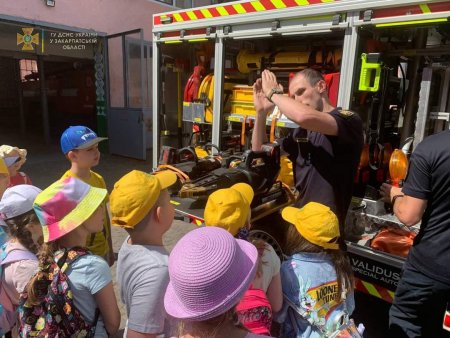 Так мукачівські рятувальники організували для вихованців Центру розвитку дитини "Азбука" пізнавальну екскурсію до пожежно-рятувального підрозділу. Хлопчики та дівчатка дізналися, наскільки важливо дотримуватися правил безпеки та якими можуть бути небезпечними пустощі з вогнем, а також оглянули спеціальну техніку рятувальників.