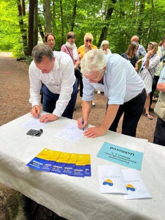 Провели й символічну акцію на підтримку України та для привернення уваги світової спільноти до війни у нашій державі – разом із переселенцями, які зараз у Дармштадті, розгорнули на Луїзенплац великий 30-метровий український стяг".