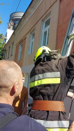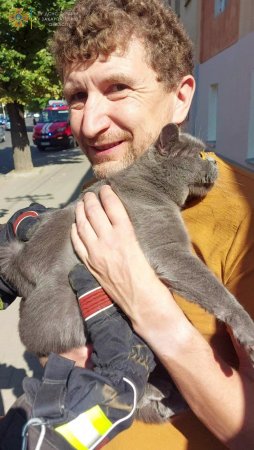 Іще одне врятоване котяче життя на рахунку в ужгородських рятувальників! Учора вранці до Служби порятунку зателефонував стурбований мешканець обласного центру з повідомленням про те, що його кицька Кіті впала з балкона на дах сусіднього будинку. Кілька годин пухнаста улюблениця нявкала й не могла спуститися донизу. Тож рятувальники прибули на місце, за допомогою драбини вилізли на дах і дістали налякану кішку. Її одразу ж передали в руки вдячного господаря, який і заспокоїв чотирилапу після її екстремальної прогулянки