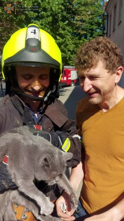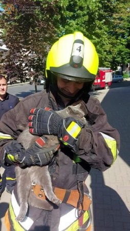 Ужгородським рятувальникам довелось провести цілу спецоперацію щоб врятувати кота (Фото)