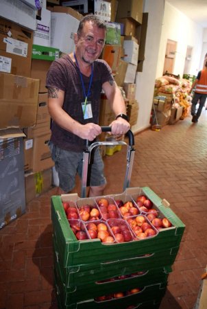 Овочі – картоплю, капусту, моркву, перець, салат, фрукти – нектарини та кавуни, які минулими вихідними привезли в Ужгород із німецького міста-побратима Дармштадта, волонтери «Совиного гнізда» розвезли у місця компактного проживання переселенців.