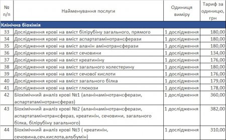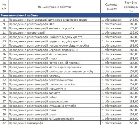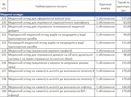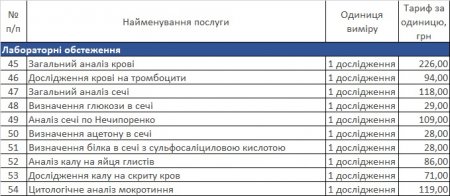 Тарифи на платні послуги, які надаються КНП "Тячівська КП"