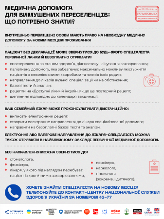 Докладніше про те, як вимушеним переселенцям скористатися медичними послугами під час війни, читайте у статті комунікаційної кампанії «Гарантовано!».