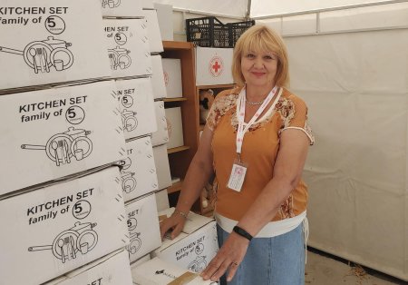 Сьогодні, після попередньої реєстрації, роздали ще 60 ковдр і стільки ж матраців, 152 великі кухонні набори посуду, в яких – дві каструлі, сковорідка, плиткі і глибокі металеві тарілки, горнята, столові прибори, лопатки тощо.