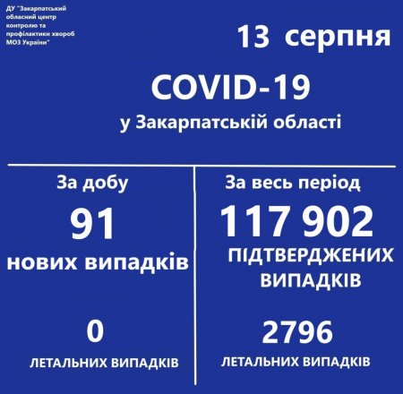 ДУ “Закарпатський обласний центр контролю та профілактики хвороб МОЗ України” повідомляє, що станом на 13.08.2022 року: