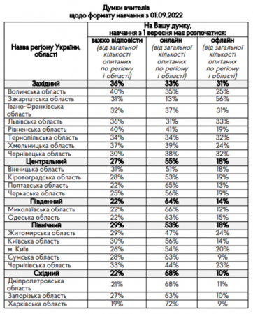 Як повідомляє портал "Освіта.ua", в опитуванні, яке було проведено 3–8 серпня, взяли участь понад 90 тисяч батьків та майже 11 тисяч учителів з всієї України.