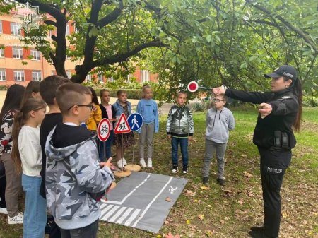 На зустрічі діти разом із поліцейськими повторювали дорожні знаки, а також вивчали жести регулювальника. Окрім того, діти ознайомилися із комплектацією службового автомобіля.