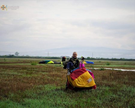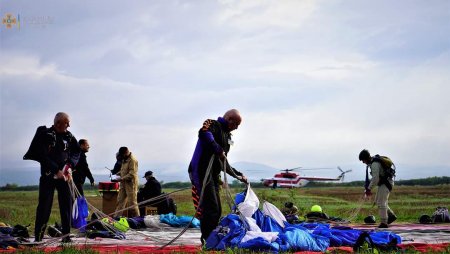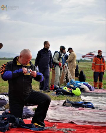 На Закарпатті в небо піднімалися літак Ан і вертоліт Мі-8, з яких рятувальники стрибали з парашутами