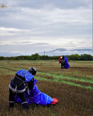 У ході тренувань в небо піднімалися літак Ан і вертоліт Мі-8, з яких рятувальники Спеціального авіаційного загону Оперативно-рятувальної служби цивільного захисту ДСНС України здійснювали стрибки з парашутом. Усе задля того, аби покращити власні навички та бути готовим до виконання дій за призначенням у випадку виникнення надзвичайної ситуації.