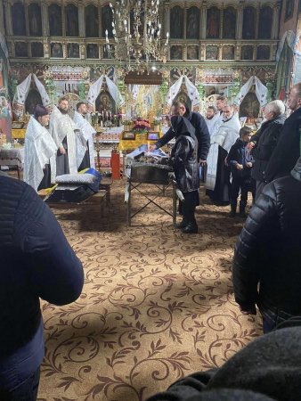 Розпочалася церемонія прощання біля батьківського будинку військовослужбовця в селі Лазещина, опісля у Свято-Петро-Павлівському храмі була проведена прощальна літургія та церемонія похованння.