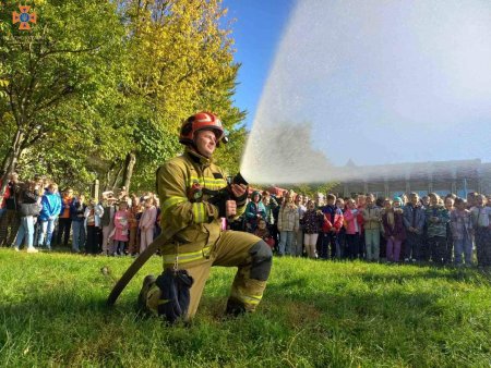 Наостанок кожен присутній мав можливість приміряти на себе пожежну каску та ліквідувати умовне загорання.