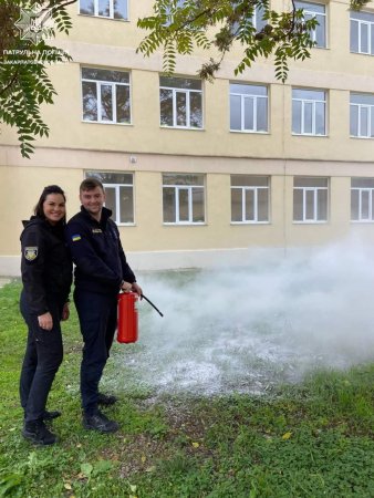 Інспектори розповіли про вибухонебезпечні предмети, які можуть використовуватися під час вчинення терористичних актів та про поведінку під час повітряної тривоги. Рятувальники розповіли про види боєприпасів та пояснили алгоритм дій під час їх виявлення, а також показали як користуватися вогнегасником.