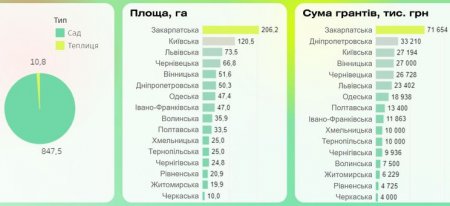 11 фермерів Закарпатської області отримали грантів на 71654 тис грн, щоб закласти 206 га садів і теплиць. Всього по Україні на цей час видано 62 гранти на 305 778 тис. грн.