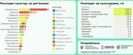 Найбільш підтримуваною культурою є яблуня – на ці сади держава виділила 258 млн грн, на лохинові плантації виділили 252,7 млн грн, а на сади волоського горіха та фундука – 248,2 млн грн.