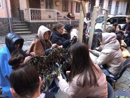 Коли їх стало стільки, що вже не можна було вміститися в приміщенні, вони почали працювати на подвір’ї. Холодна та похмура погода не стала на заваді нашій молоді і не тільки. Вони продовжують свою роботу на подвір’ї, бо вірять, що виготовлені їхніми руками захисні сітки врятують життя нашим хлопцям, нашим воїнам, які боронять рідну землю від лютого ворога.»