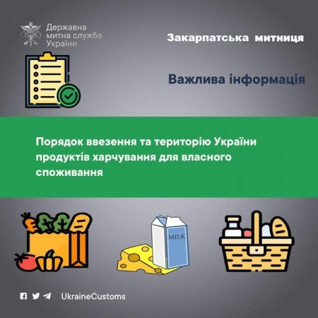 Закарпатська митниця консультує, скільки дозволяється ввозити із-за кордону продуктів харчування