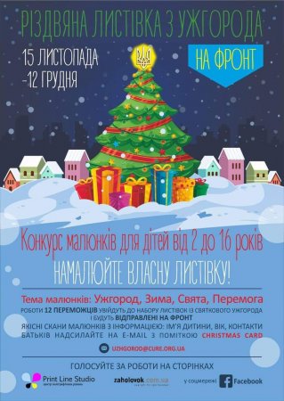 Конкурс малюнків «Різдвяна листівка з Ужгорода» триватиме до 12 грудня. Цього року організатори трохи розширили тематику і, окрім зображень зими і святкового міста, закликають учасників малювати і Перемогу України.