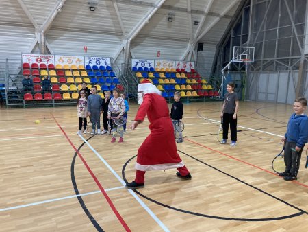 В цьому році ми змінили формат і провели зустріч з Миколаєм не у вигляді турніру, а як тренування, на яке неочікувано з‘явився улюбленець всіх дітей. І тренування чудовим чином змінилося на гру в теніс з Святим Миколаєм, веселі тенісні конкурси (в яких брали участь і тренери) з призами за влучні попадання в мішені. А потім були диво-подарунки всім учасникам святкового тренування…