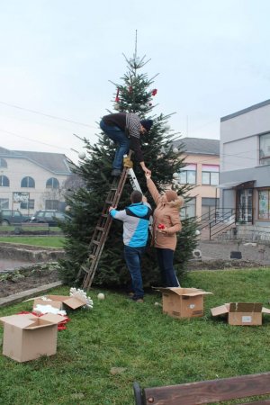 Прикрасили її ялинковими іграшками, які залишились з минулого року, а також прикрасами "Зірка" створеними дітьми під керівництвом керівника гуртків Надії Ватаман. Гірлянди та світлові декорації на ялинку не встановлювали, задля максимальної економії електроенергії та зменшення навантаження електромереж.