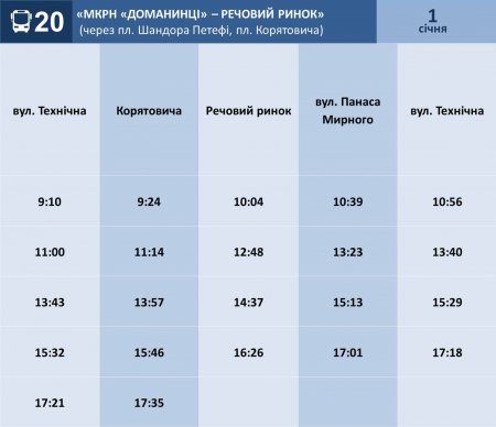 Також адміністрація комунального підприємства повідомляє, що із 2 січня автобуси їздитимуть за звичними графіками.
